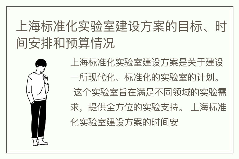 上海标准化实验室建设方案的目标、时间安排和预算情况