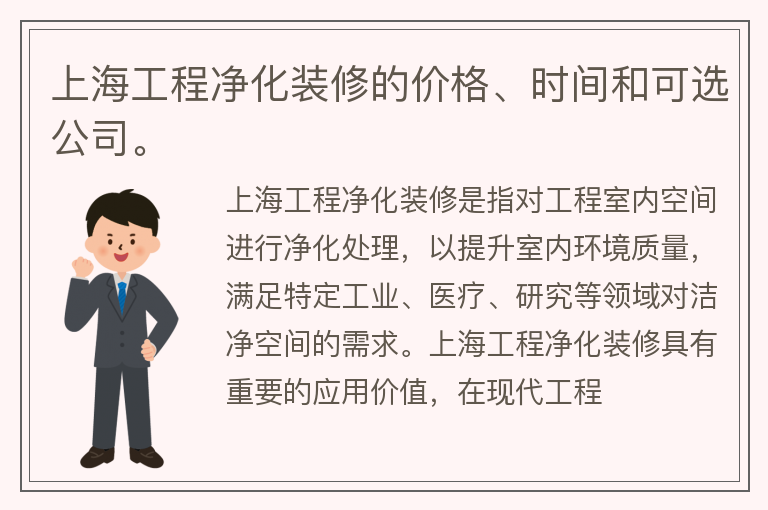 上海工程净化装修的价格、时间和可选公司。