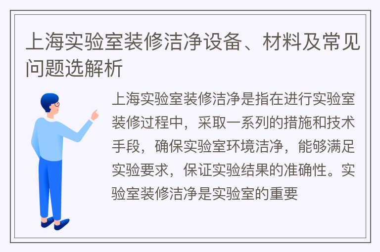 上海实验室装修洁净设备、材料及常见问题选解析