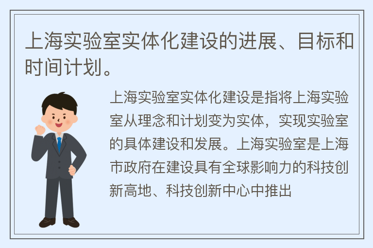 上海实验室实体化建设是指将上海实验室从理念和计划变为实体,实现实验室的具体建设和发展。上海实验室是上海市政府在建设具有全球影响力的科技创新高地、科技创新中心中推出......【点击详情】