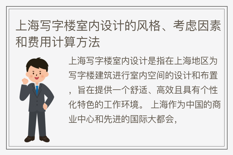 上海写字楼室内设计的风格、考虑因素和费用计算方法