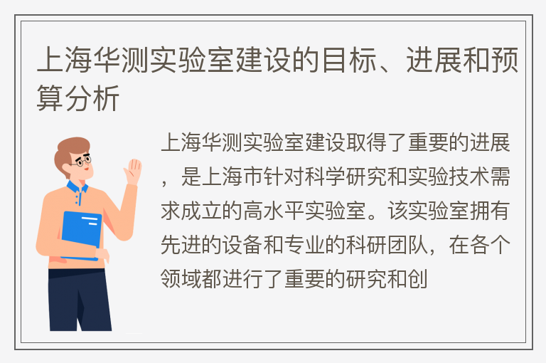 上海华测实验室建设取得了重要的进展,是上海市针对科学研究和实验技术需求成立的高水平实验室。该实验室拥有先进的设备和专业的科研团队,在各个领域都进行了重要的研究和创......【点击详情】