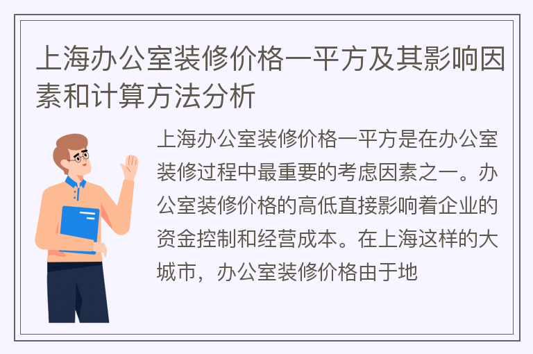 上海办公室装修价格一平方及其影响因素和计算方法分析