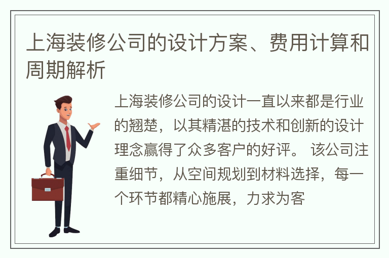 上海装修公司的设计方案、费用计算和周期解析