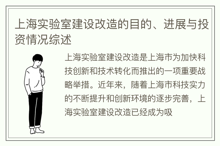 上海实验室建设改造的目的、进展与投资情况综述