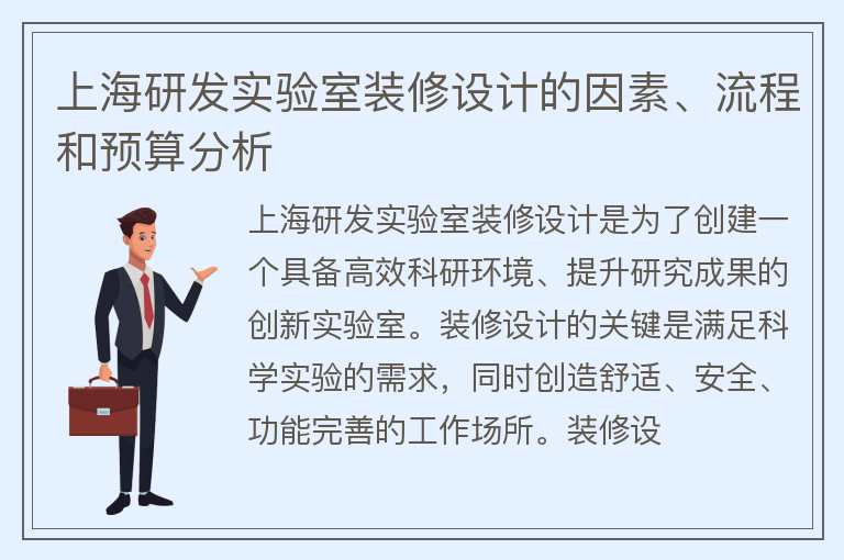 上海研发实验室装修设计的因素、流程和预算分析