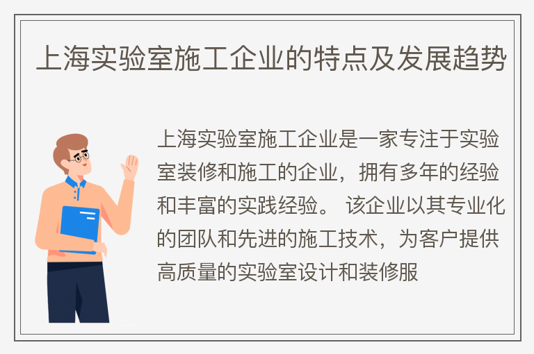 上海实验室施工企业是一家专注于实验室装修和施工的企业,拥有多年的经验和丰富的实践经验。 该企业以其专业化的团队和先进的施工技术,为客户提供高质量的实验室设计和装修服......【点击详情】