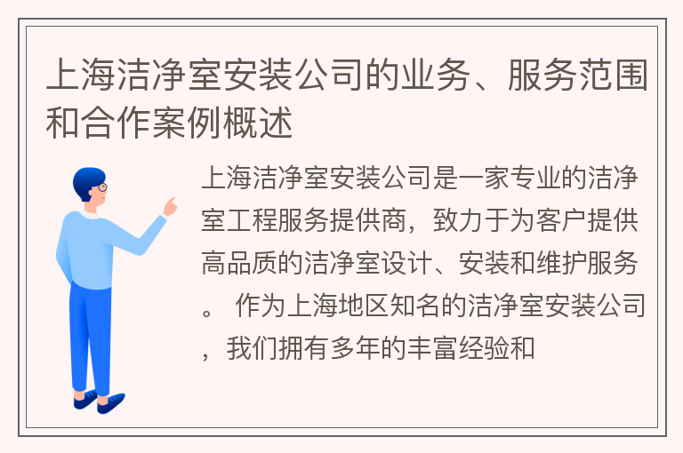上海洁净室安装公司的业务、服务范围和合作案例概述
