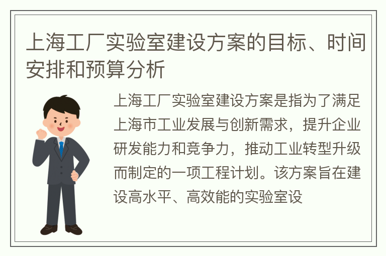 上海工厂实验室建设方案的目标、时间安排和预算分析