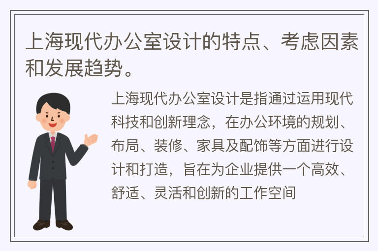 上海现代办公室设计的特点、考虑因素和发展趋势。