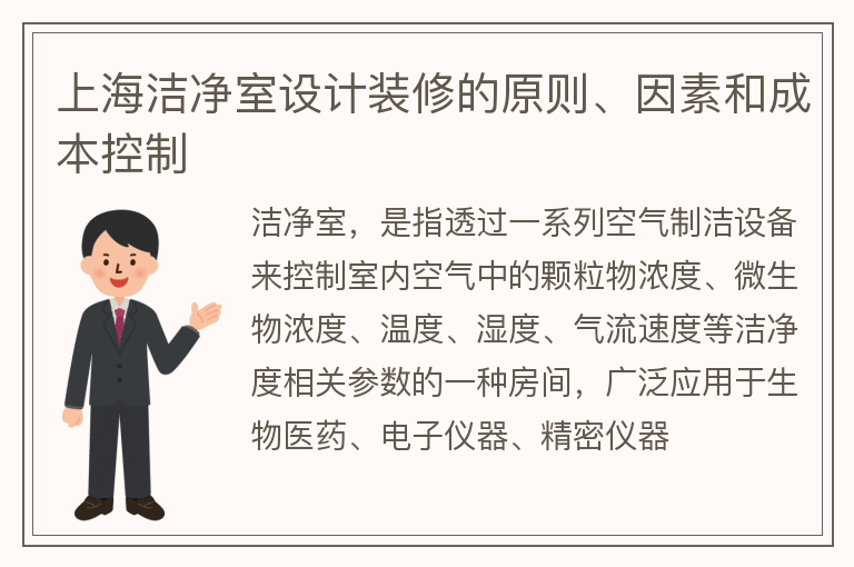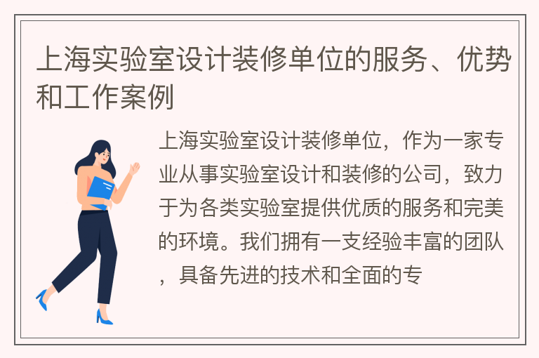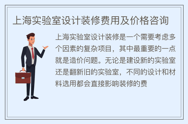 上海实验室设计装修是一个需要考虑多个因素的复杂项目,其中最重要的一点就是造价问题。无论是建设新的实验室还是翻新旧的实验室,不同的设计和材料选用都会直接影响装修的费......【点击详情】