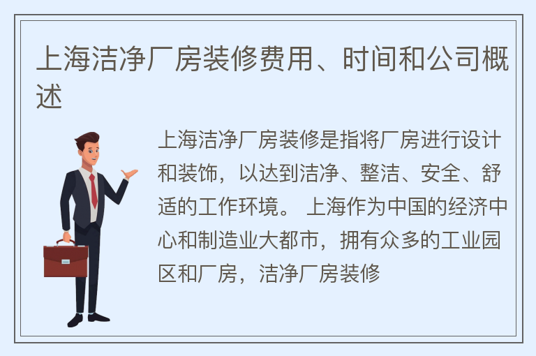 上海洁净厂房装修是指将厂房进行设计和装饰,以达到洁净、整洁、安全、舒适的工作环境。 上海作为中国的经济中心和制造业大都市,拥有众多的工业园区和厂房,洁净厂房装修......【点击详情】
