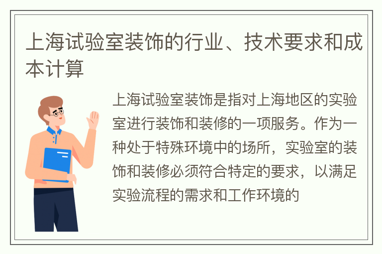 上海试验室装饰是指对上海地区的实验室进行装饰和装修的一项服务。作为一种处于特殊环境中的场所,实验室的装饰和装修必须符合特定的要求,以满足实验流程的需求和工作环境的......【点击详情】