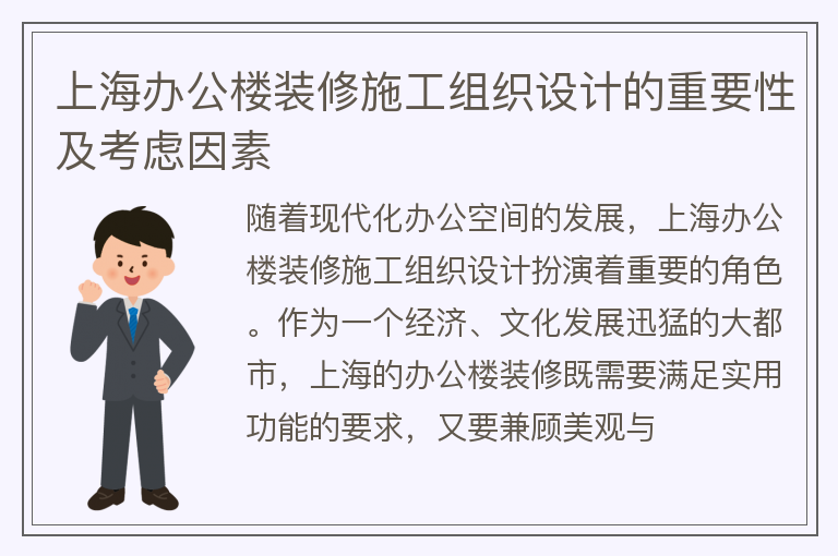 上海办公楼装修施工组织设计的重要性及考虑因素