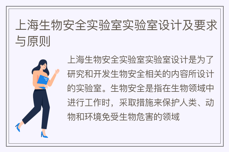 上海生物安全实验室实验室设计是为了研究和开发生物安全相关的内容所设计的实验室。生物安全是指在生物领域中进行工作时,采取措施来保护人类、动物和环境免受生物危害的领域......【点击详情】