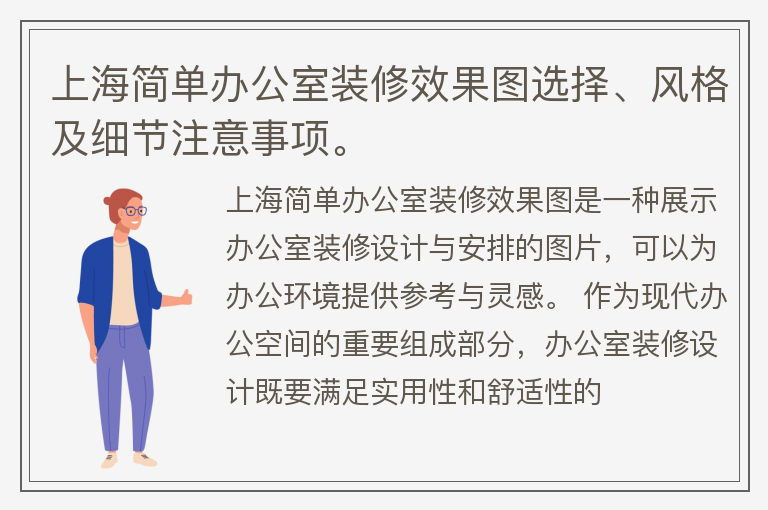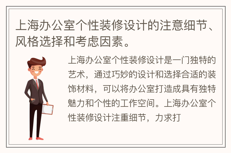 上海办公室个性装修设计的注意细节、风格选择和考虑因素。