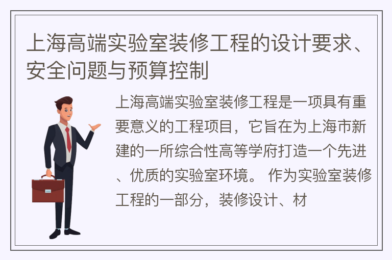 上海高端实验室装修工程的设计要求、安全问题与预算控制