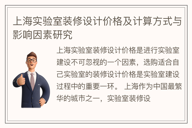 上海实验室装修设计价格及计算方式与影响因素研究