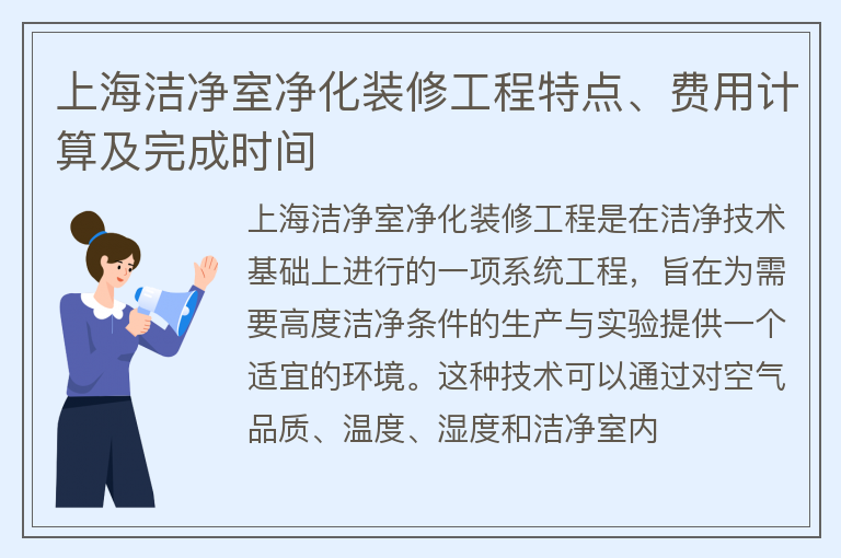 上海洁净室净化装修工程特点、费用计算及完成时间