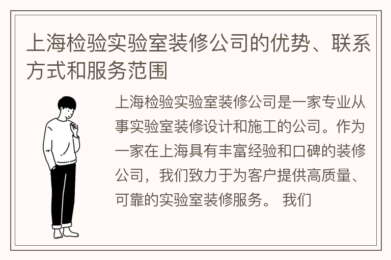 上海检验实验室装修公司的优势、联系方式和服务范围