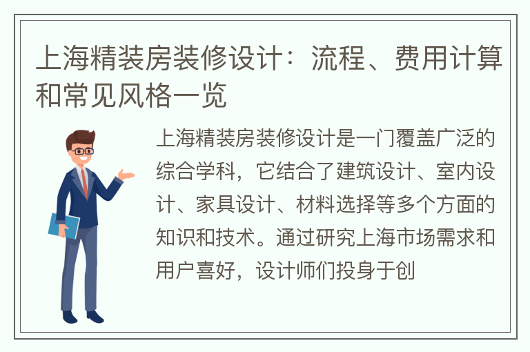 上海精装房装修设计:流程、费用计算和常见风格一览