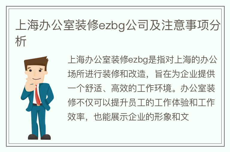 上海办公室装修ezbg是指对上海的办公场所进行装修和改造,旨在为企业提供一个舒适、高效的工作环境。办公室装修不仅可以提升员工的工作体验和工作效率,也能展示企业的形象和文......【点击详情】