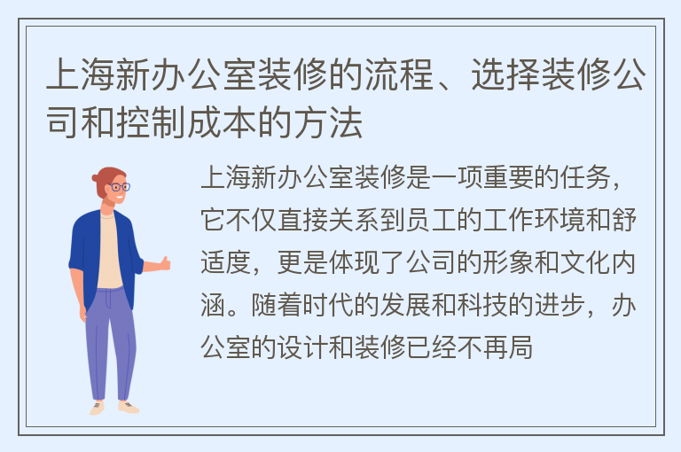 上海新办公室装修的流程、选择装修公司和控制成本的方法