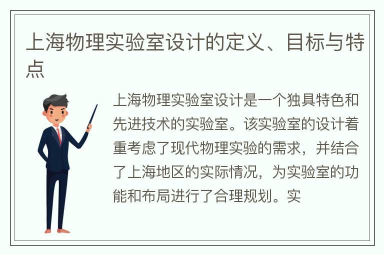 上海物理实验室设计是一个独具特色和先进技术的实验室。该实验室的设计着重考虑了现代物理实验的需求,并结合了上海地区的实际情况,为实验室的功能和布局进行了合理规划。实......【点击详情】