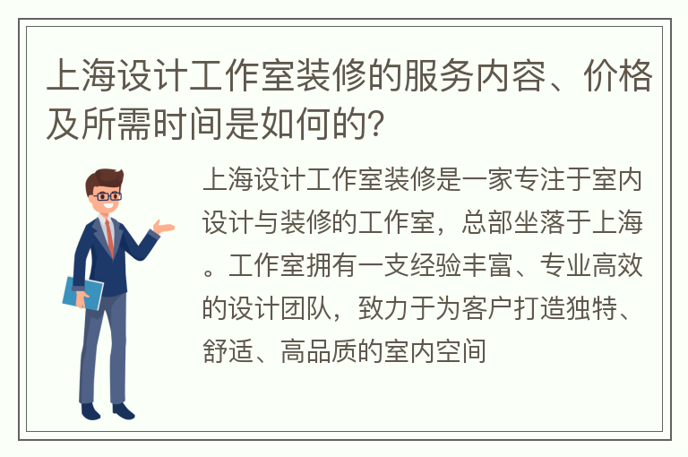 上海设计工作室装修的服务内容、价格及所需时间是如何的?