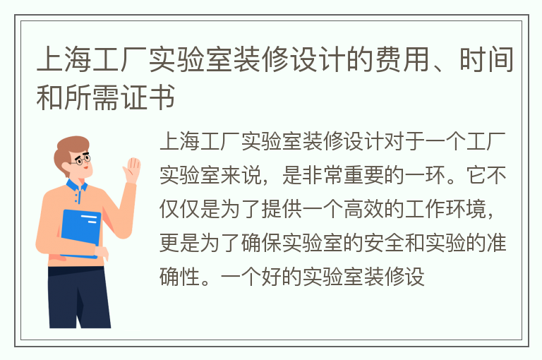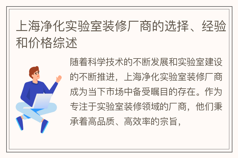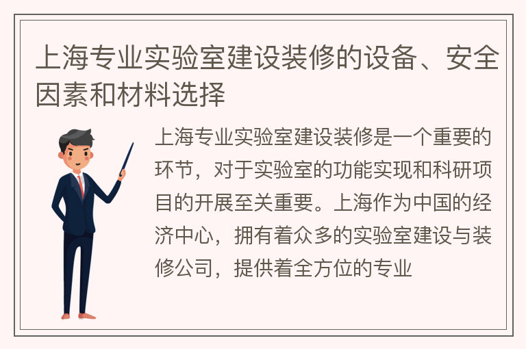 上海专业实验室建设装修的设备、安全因素和材料选择