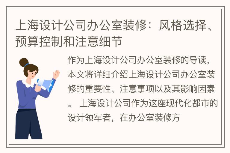 上海设计公司办公室装修:风格选择、预算控制和注意细节