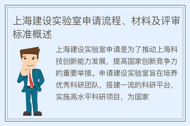 上海建设实验室申请是为了推动上海科技创新能力发展,提高国家创新竞争力的重要举措。申请建设实验室旨在培养优秀科研团队,搭建一流的科研平台,实施高水平科研项目,为国家......【点击详情】
