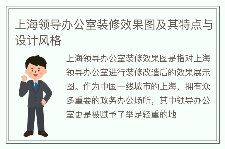 上海领导办公室装修效果图是指对上海领导办公室进行装修改造后的效果展示图。作为中国一线城市的上海,拥有众多重要的政务办公场所,其中领导办公室更是被赋予了举足轻重的地......【点击详情】