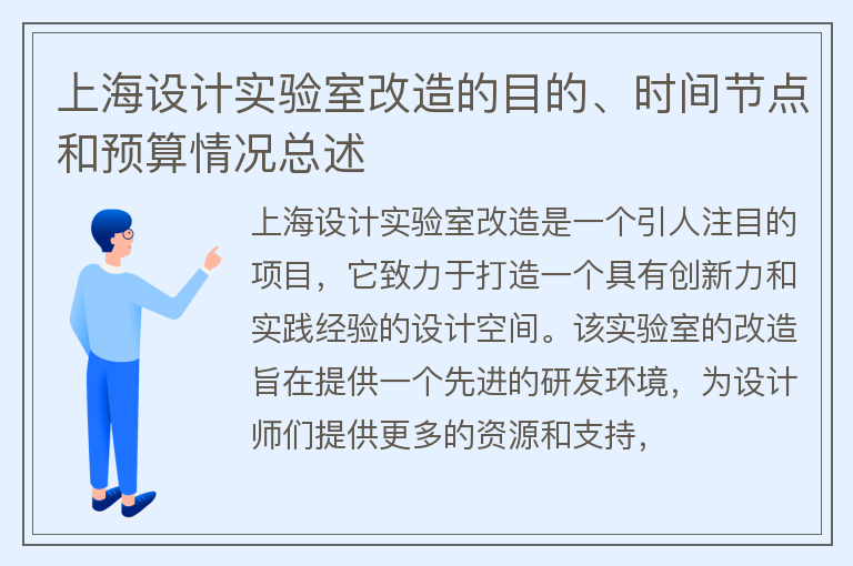 上海设计实验室改造的目的、时间节点和预算情况总述