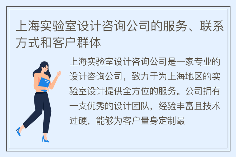 上海实验室设计咨询公司的服务、联系方式和客户群体
