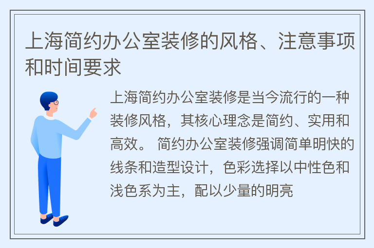 上海简约办公室装修的风格、注意事项和时间要求