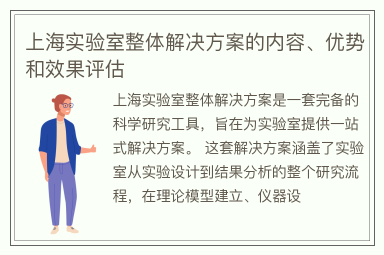 上海实验室整体解决方案是一套完备的科学研究工具,旨在为实验室提供一站式解决方案。 这套解决方案涵盖了实验室从实验设计到结果分析的整个研究流程,在理论模型建立、仪器设......【点击详情】