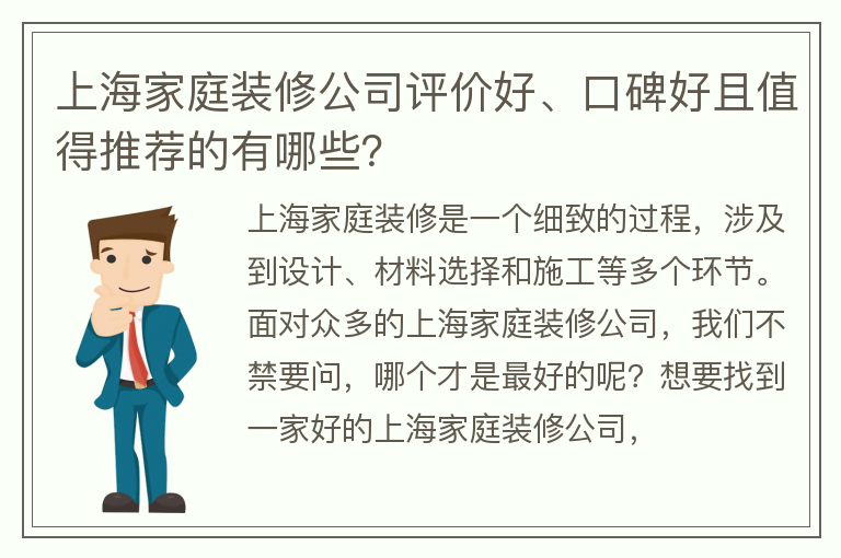 上海家庭装修公司评价好、口碑好且值得推荐的有哪些?