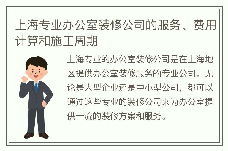 上海专业办公室装修公司的服务、费用计算和施工周期