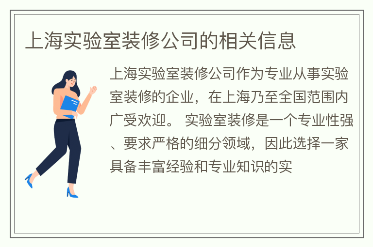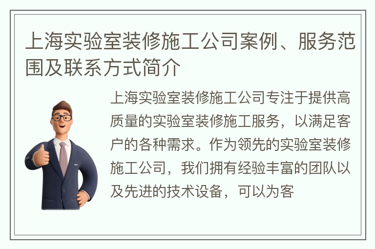 上海实验室装修施工公司案例、服务范围及联系方式简介