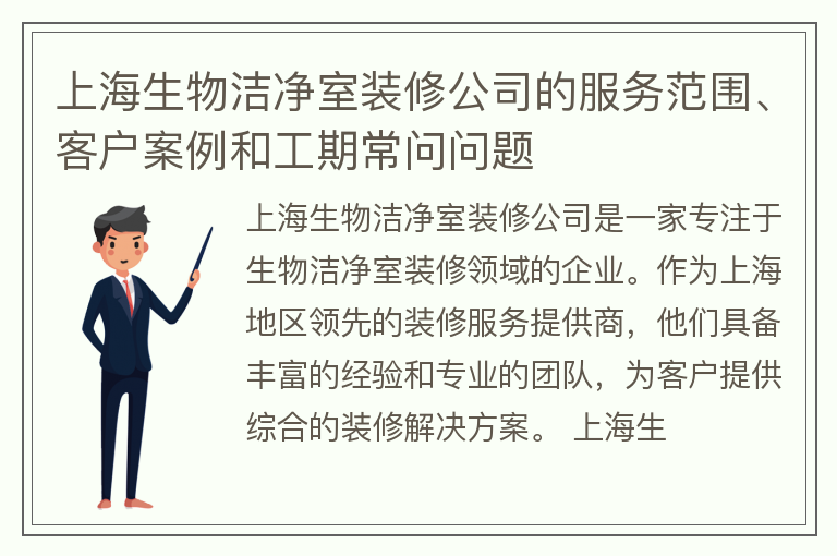 上海生物洁净室装修公司的服务范围、客户案例和工期常问问题