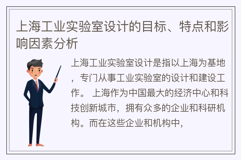 上海工业实验室设计是指以上海为基地,专门从事工业实验室的设计和建设工作。 上海作为中国最大的经济中心和科技创新城市,拥有众多的企业和科研机构。而在这些企业和机构中,......【点击详情】