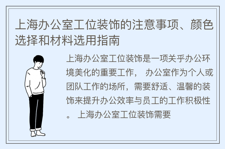 上海办公室工位装饰的注意事项、颜色选择和材料选用指南