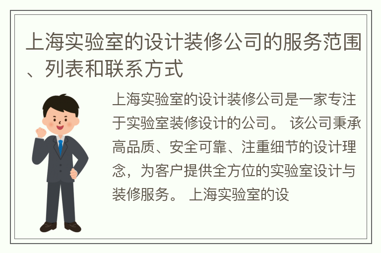 上海实验室的设计装修公司的服务范围、列表和联系方式
