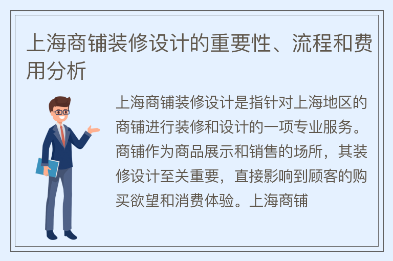 上海商铺装修设计是指针对上海地区的商铺进行装修和设计的一项专业服务。商铺作为商品展示和销售的场所,其装修设计至关重要,直接影响到顾客的购买欲望和消费体验。上海商铺......【点击详情】
