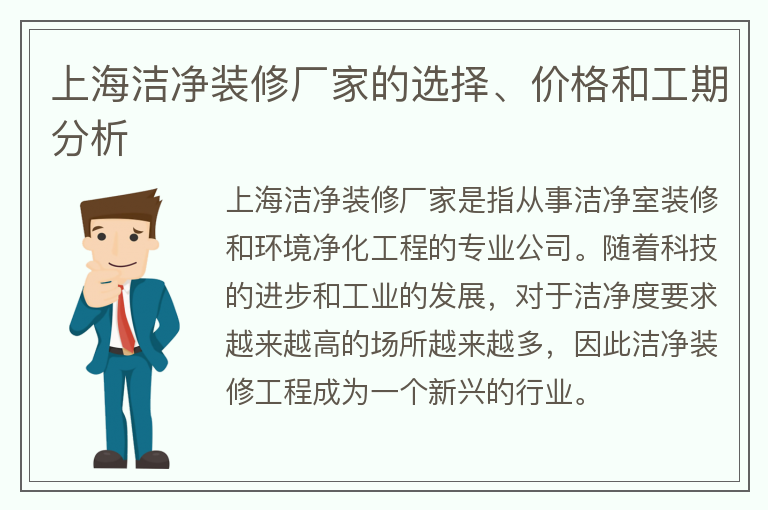 上海洁净装修厂家是指从事洁净室装修和环境净化工程的专业公司。随着科技的进步和工业的发展,对于洁净度要求越来越高的场所越来越多,因此洁净装修工程成为一个新兴的行业。......【点击详情】