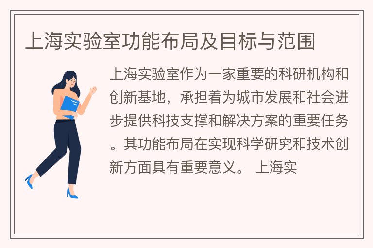 上海实验室作为一家重要的科研机构和创新基地,承担着为城市发展和社会进步提供科技支撑和解决方案的重要任务。其功能布局在实现科学研究和技术创新方面具有重要意义。 上海实......【点击详情】