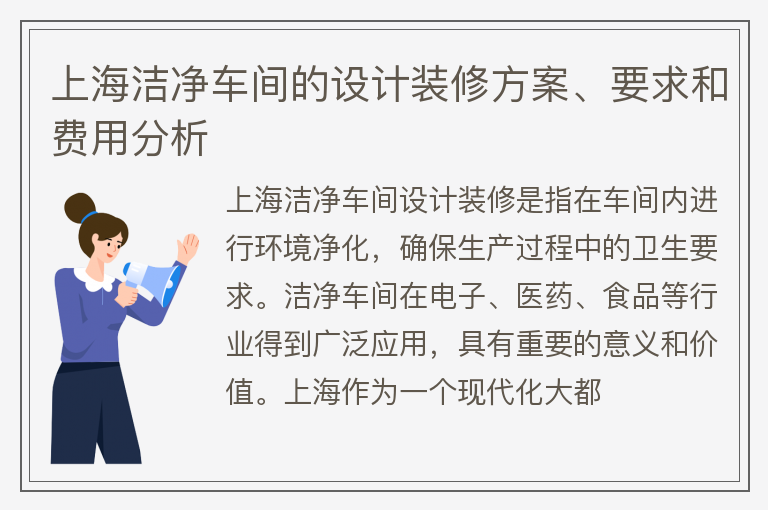 上海洁净车间设计装修是指在车间内进行环境净化,确保生产过程中的卫生要求。洁净车间在电子、医药、食品等行业得到广泛应用,具有重要的意义和价值。上海作为一个现代化大都......【点击详情】