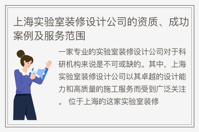 上海实验室装修设计公司的资质、成功案例及服务范围