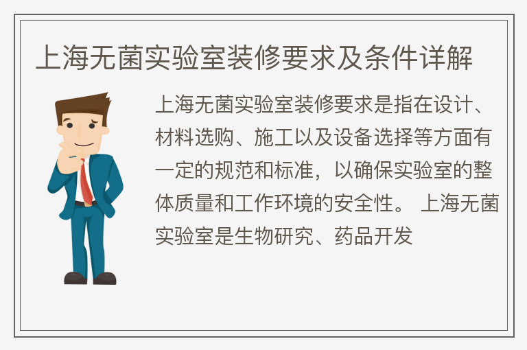 上海无菌实验室装修要求是指在设计、材料选购、施工以及设备选择等方面有一定的规范和标准,以确保实验室的整体质量和工作环境的安全性。 上海无菌实验室是生物研究、药品开发......【点击详情】
